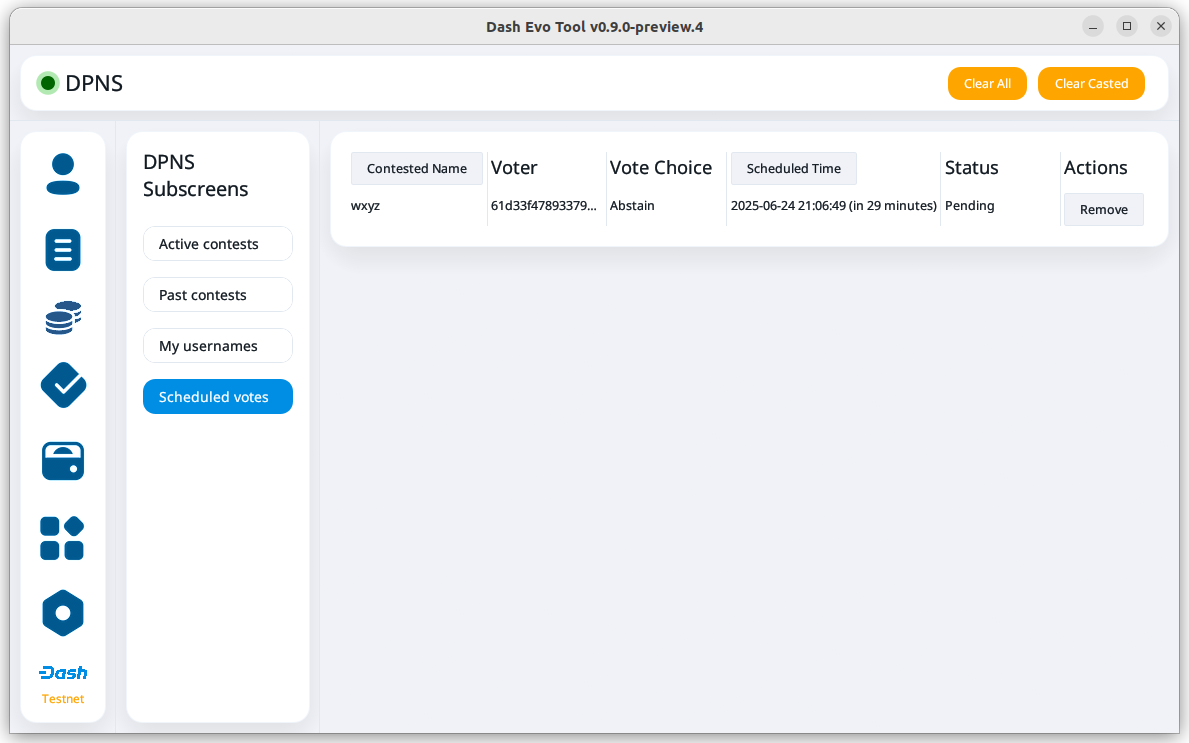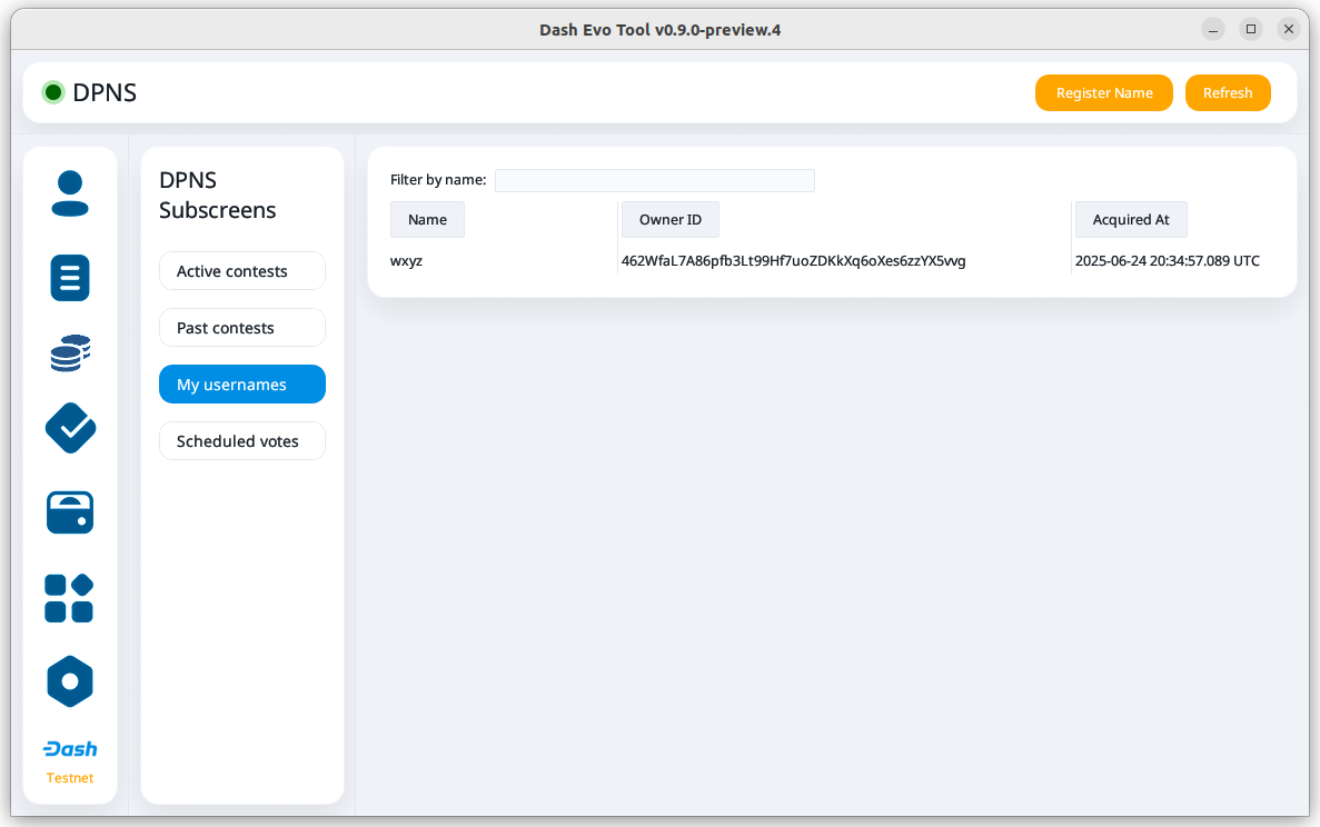 Dash Evo Tool is an application designed to help you vote on usernames, withdraw evonode credits, manage tokens, and complete an expanding list of Platform actions. This guide describes how to download, install, and use the Dash Evo Tool.