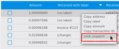 Locking UTXOs in Dash Core wallet#