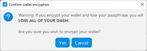 The following section will detail the steps you need to follow if you choose to encrypt your Dash wallet later.