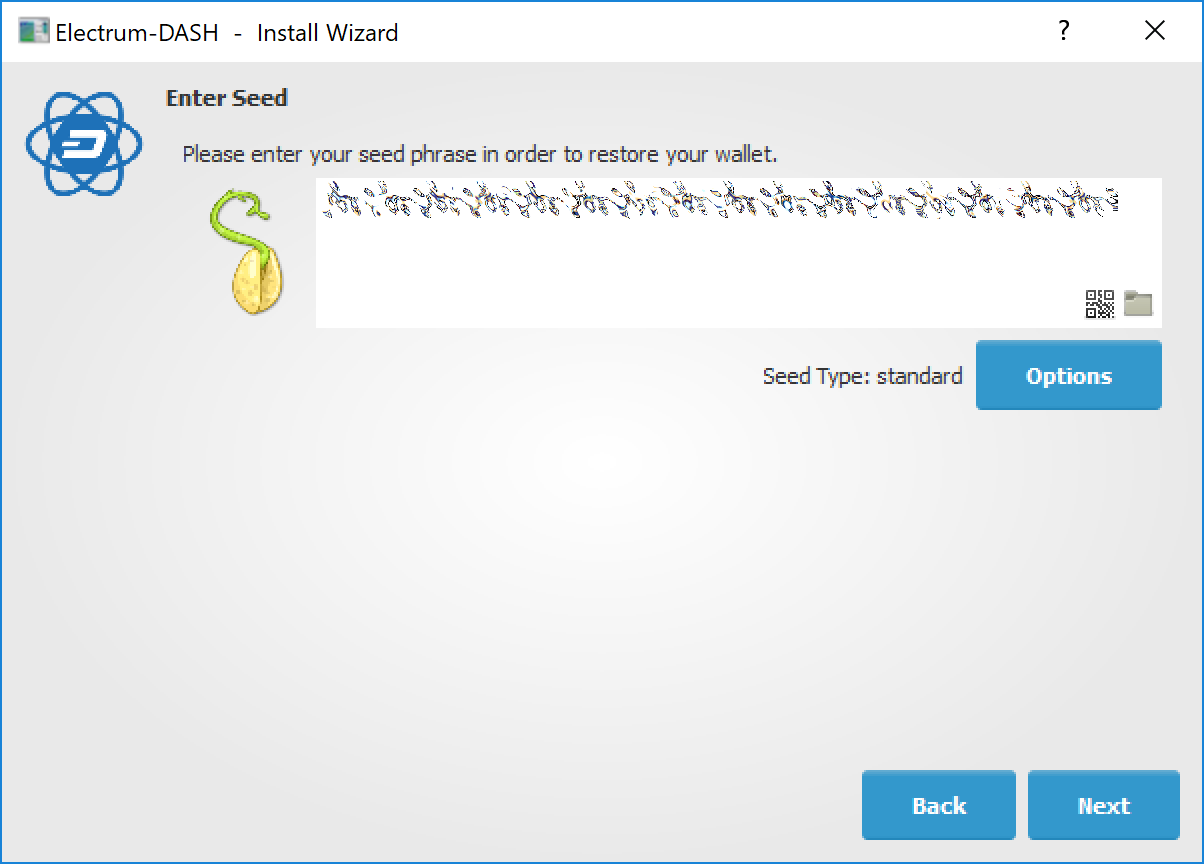 Dash Electrum should now detect your Dash iOS balance and you should have complete access to your funds. The seed phrase won’t be available in Dash Electrum , so you will just need to follow the steps above again if you want to restore this wallet from the recovery phrase again. It is recommended to send your funds to a new Dash Electrum wallet instead and follow standard backup procedures.